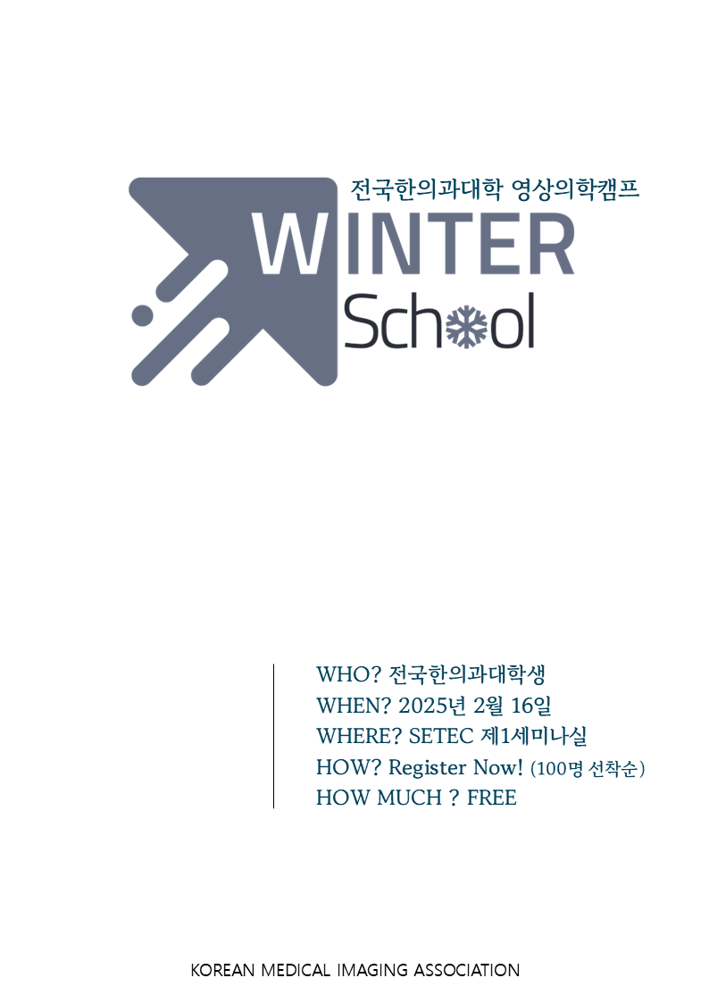 Winter School Winter School 2025 SETEC by AR Manager 2025. 12. 25. 공유하기 게시글 관리 Acupuncture Radiology 관련글 Winter School 2026 원광대학교 한의과대학