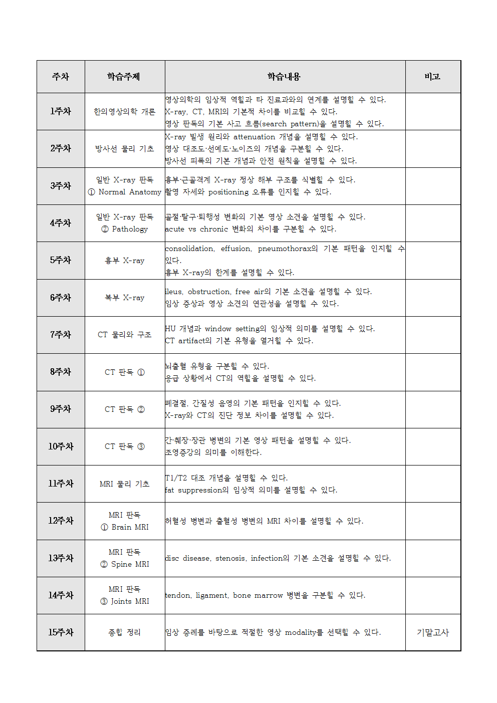 Acupuncture Radiology DGU 영상의학 수업계획서 (초안) by AR Manager 2025. 12. 25. 공유하기 게시글 관리 Acupuncture Radiology
