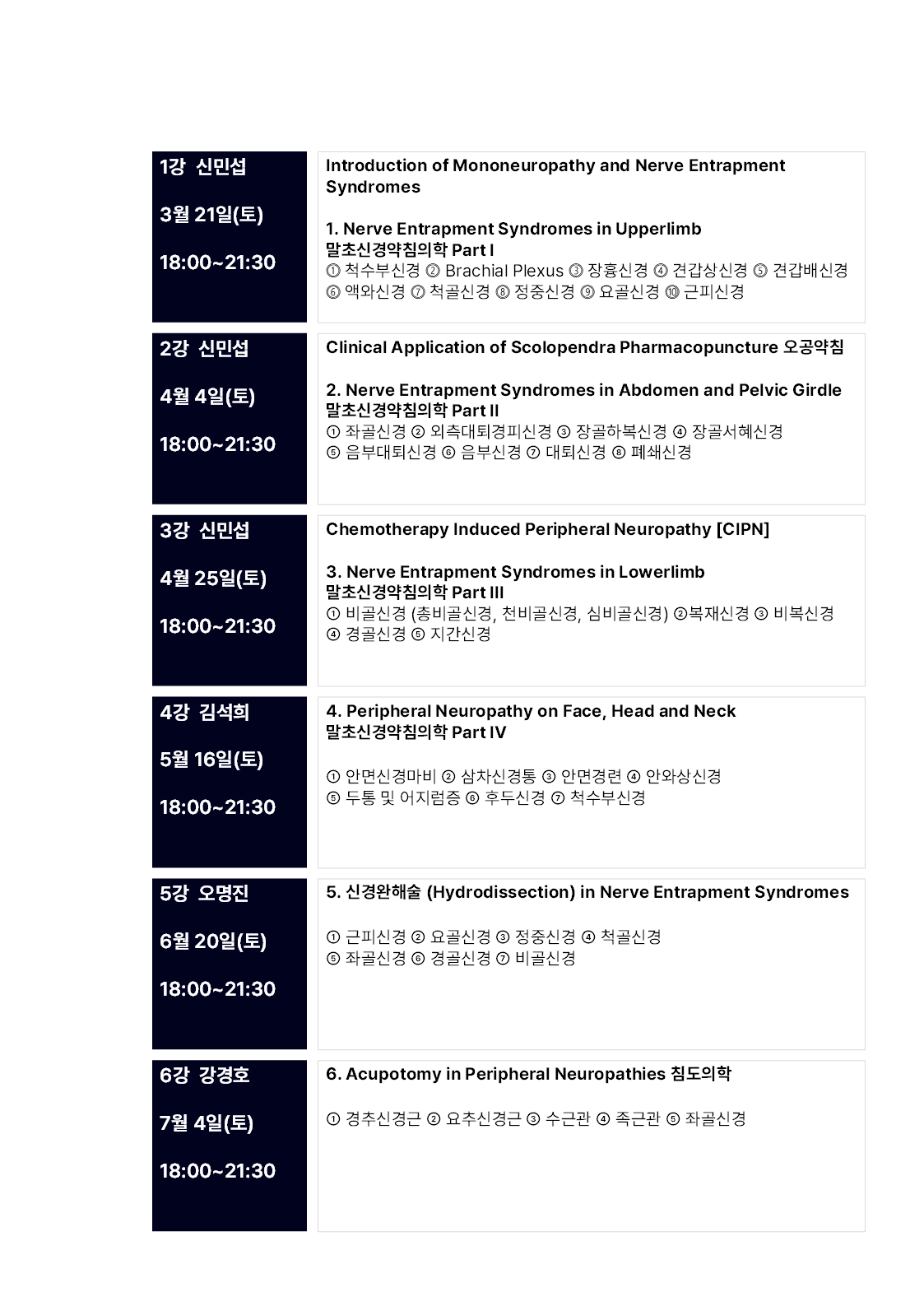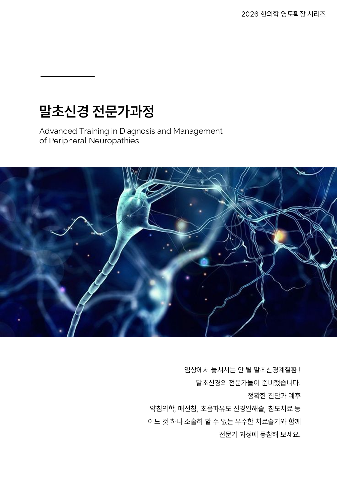 Conference/Academy 말초신경 전문가과정 2026 [서울권, 마감] by Pharmacopuncture Research Lab 2026. 1. 24. 공유하기 게시글 관리 Acupuncture Radiology 관련글 2026 대한침구의학회 춘계학술대회 [ uncommon, but unmistakable ] [부산] 말초신경 전문가과정 2026 The 피부.미용.외과 Academy [ COEX ] The Knee Academy