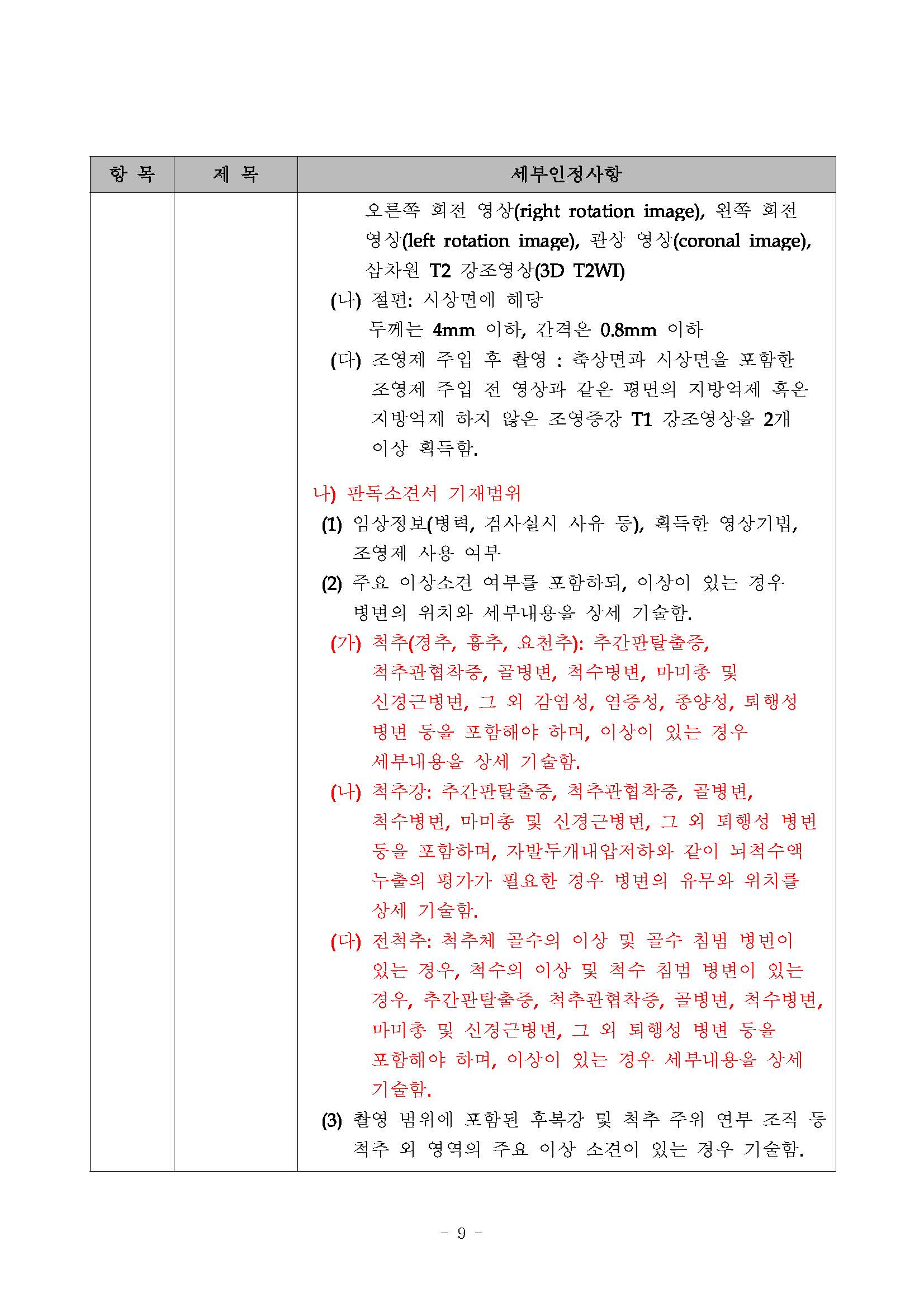 MRI 요양급여의 적용기준 및 방법에 관한 세부사항
